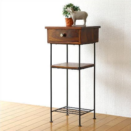 電話台 木製 アイアン スリム サイドテーブル 花台 ハイスタンド シーシャムとアイアンの電話台