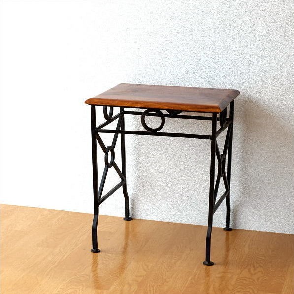 [ コンソールテーブル 玄関 おしゃれ 木製 アイアン 鉄脚 サイドテーブル 花台 花瓶台 アジアン モダン アンティーク ナチュラル インテリア シーシャムウッド 天然木 無垢材 キッチン 洗面所 完成品 ]
