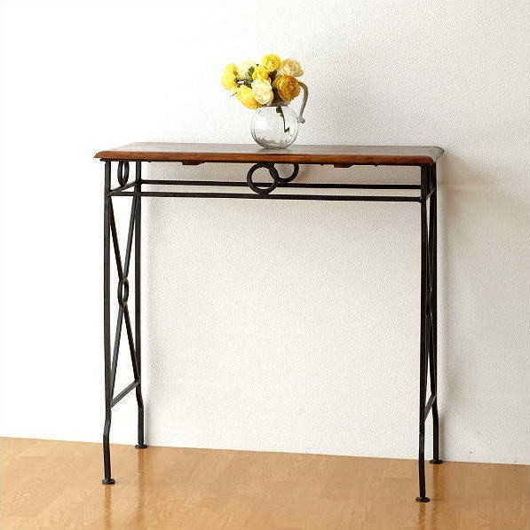コンソールテーブル 玄関 木製 アイアン おしゃれ 鉄脚 サイドテーブル 花台 花瓶台 アジアン アンティーク ネストテーブル コンソールL
