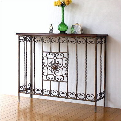 コンソールテーブル アンティーク 玄関 アイアン 木製 おしゃれ 花台 ハイスタンド クラシック アイアンとウッドのコンソールテーブル