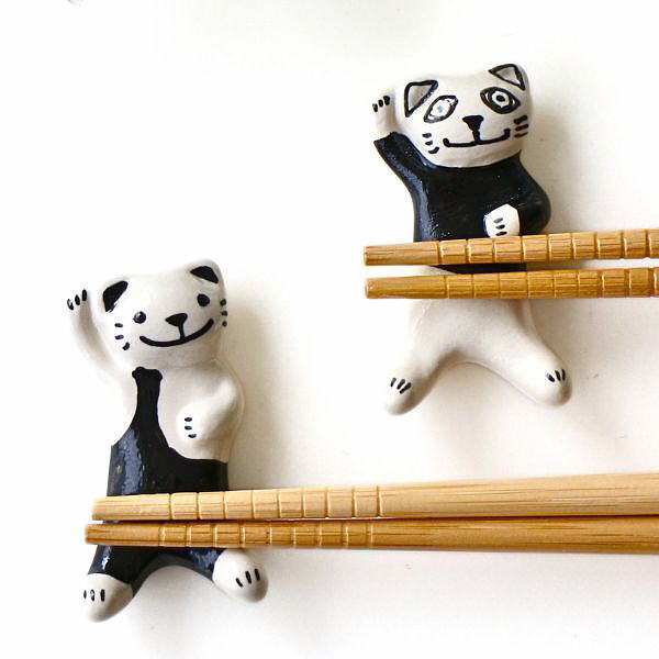 箸置き 陶器 置物 ネコ ねこ 猫 オブジェ ペア セット かわいい おしゃれ ミニ 小さい 有田焼 日本製 モノトーンネコの箸置き 2個セット