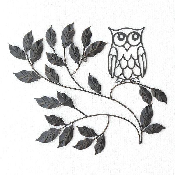 壁飾り アイアン おしゃれ フクロウ ふくろう 雑貨 玄関 エントランス かわいい 壁掛け インテリア アイアンの壁飾り オウルリーフ