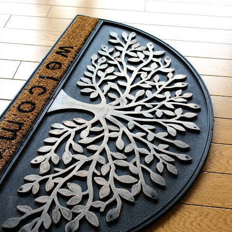 玄関マット 屋外 おしゃれ コイヤーマット ラバーマット ココヤシ 外 室外 Welcome ウェルカム 半円 エントランスマット シンボルツリー