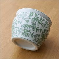 鉢カバー 陶器 おしゃれ 10号 8号鉢用 30cm 穴なし 火鉢 シノワズリ 和モダン 玄関 室内 屋外 睡蓮鉢 メダカ鉢 金魚鉢 陶器の火鉢 緑花鳥 S