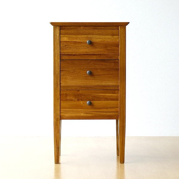 電話台 FAX台 チェスト 3段 木製 天然木 無垢 引き出し収納 おしゃれ リビング収納 幅45 奥行35 高さ80 完成品 チークスリム三段チェスト