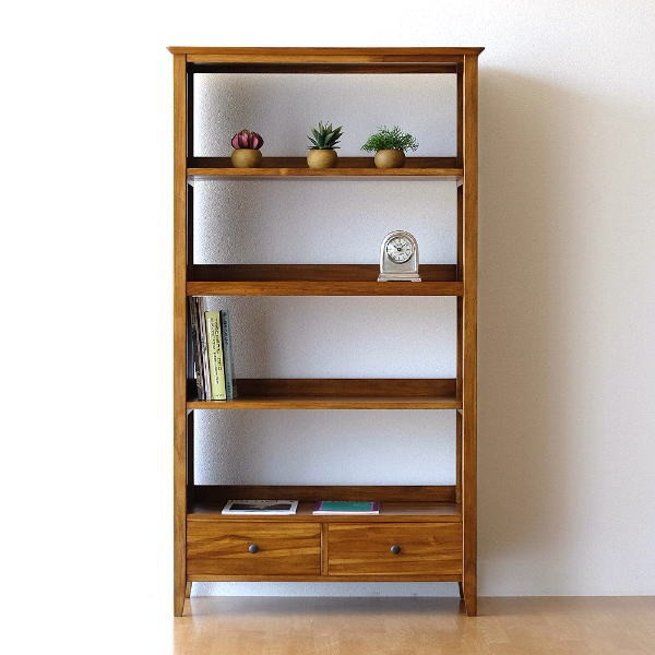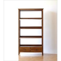 本棚 シェルフ ラック 書棚 おしゃれ 木製 天然木 無垢 A4 リビング収納 大容量 薄型 引き出し 幅90 高さ160 完成品 チークハイシェルフ