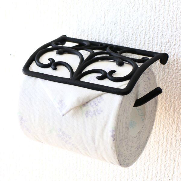 [ トイレットペーパーホルダー カバー 真鍮 アンティーク エレガント デザイン おしゃれ ブラック 黒 金属製 高級感 ]