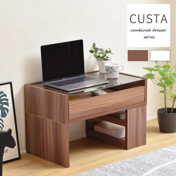 コンパクト 白 透明 一人暮らし ホワイト リビング 収納 強化ガラス 化粧台 収納付き 棚付き 長方形 茶色 引き出し付き 見せる収納 メイク 木製 木目 ワンルーム 雑貨 ブラウン パソコンデスク pc ロー 鏡 シンプル スライド 棚 ラック ガラス ダークブラウン 机 テレワーク ノートパソコン ノートpc 本棚 本立て ラック付き リモートワーク リモート ガラストップ 在宅 在宅ワーク ドレッサー代わり ブックスタンド ブックシェルフ アクセサリー ミニテーブル 木目調 低い コンパクトデスク スリムデスク 収納デスク