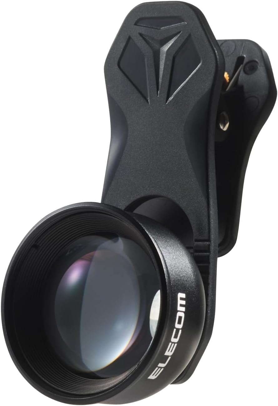 エレコム スマホ 望遠レンズ 2倍 2× 外付け 挟むだけ FMC加工 ケラレ現象軽減 レンズキャップ付き 収納ポーチ付属 iphone P-SLZ2XBK