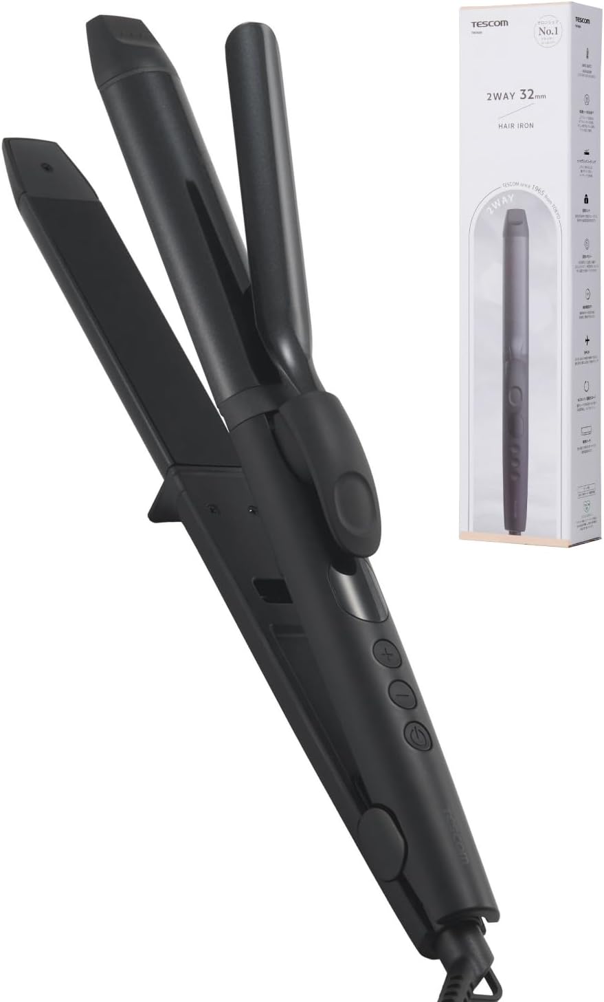 TESCOM ヘアアイロン コテ 32mm ストレート カール 2way 温度調整/ロック/メモリー 海外対応 自動OFF 耐熱ポーチ付 1.7m ブラック TW363A-K