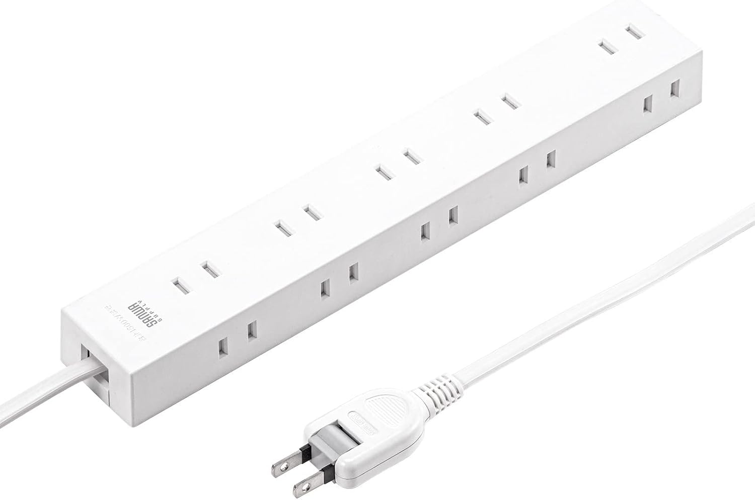 電源タップ サンワサプライ 10個口 2P 1m たくさん挿せるレイアウト 強力ネオジムマグネット ほこりシャッター スイングプラグ ホワイト TAP-2210-1W