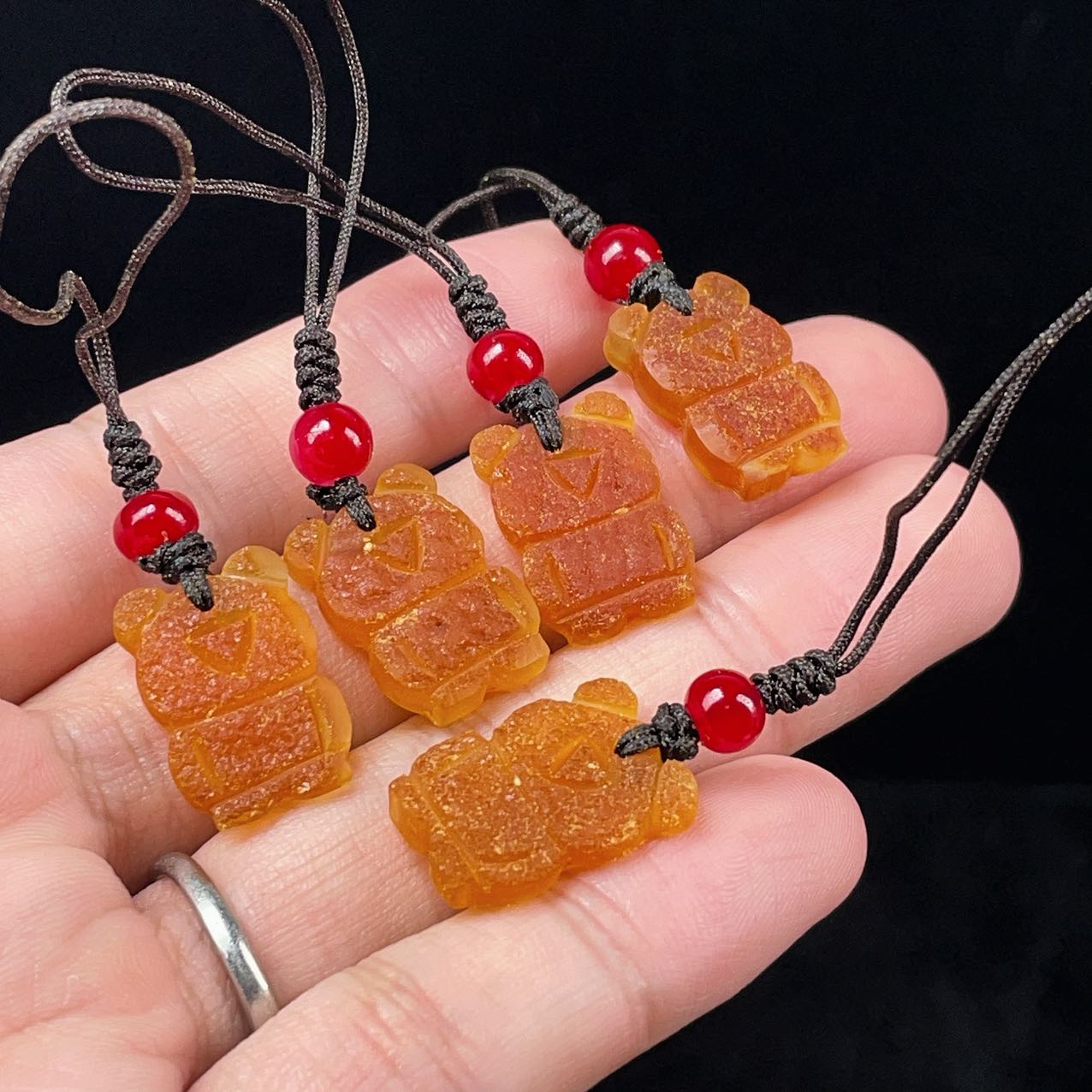PROME 天然石 琥珀 アンバー 熊 手彫り ストラップ NO.P2335