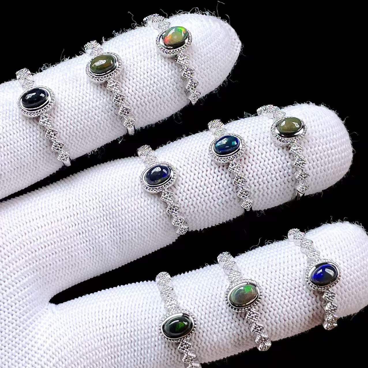 PROME 天然石 特別仕様品・ブラックオパール・白銅指輪・フリーサイズ・p5033