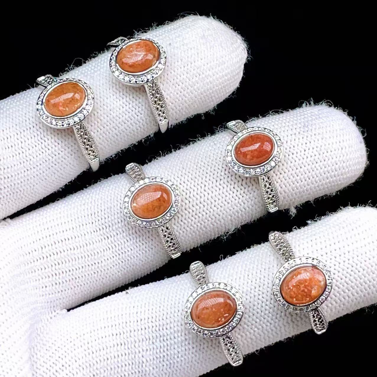 PROME 天然石 特別仕様品・限定品・再入荷不可・サンストーン・白銅指輪・フリーサイズ・p5614