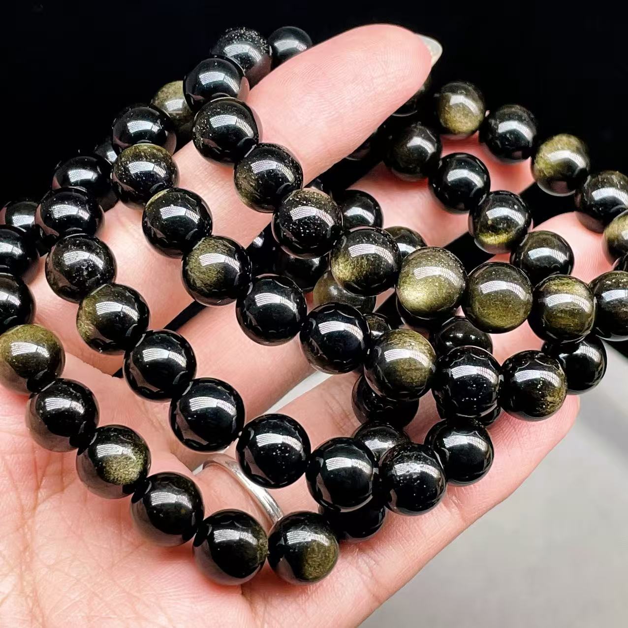 PROME 天然石・高品質・ゴールデンオブシディアン・メキシコ産・10mm・ブレスレット p6244