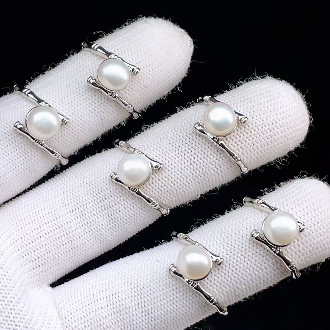 PROME 天然石 特別仕様品・限定品・再入荷不可・淡水パール・白銅指輪・フリーサイズ・P6376