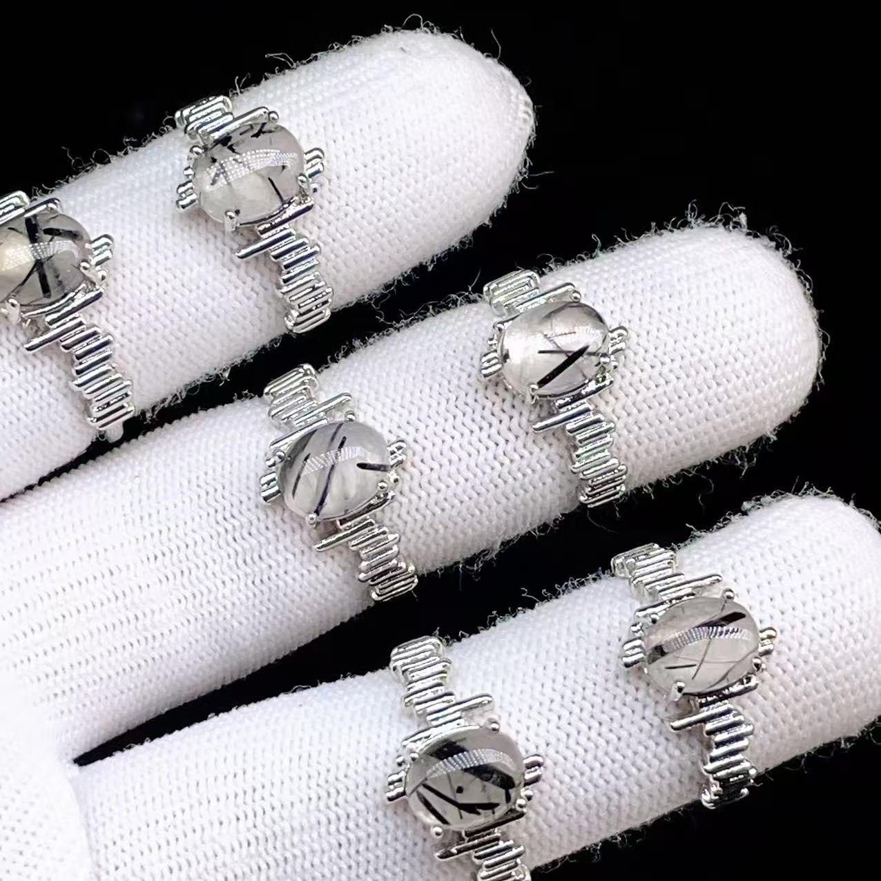 PROME 天然石 特別仕様品・限定品・再入荷不可・ブラックルチルクォーツ・白銅指輪・フリーサイズ・P6384