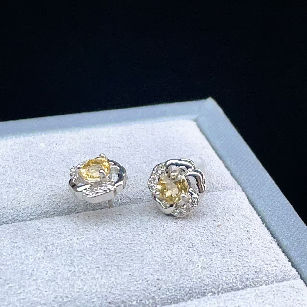 PROME・天然石・特別仕様品・高品質・シトリン・8x8x15mm・[デザイン部分は白銅、ポスト部分はシルバー]・ピアス・p6480