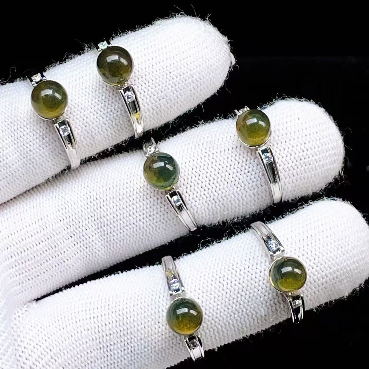 PROME 天然石・特別仕様品・限定品・再入荷不可・ブルーアンバー・白銅(キュプロニッケル)製・指輪・フリーサイズ・P6800
