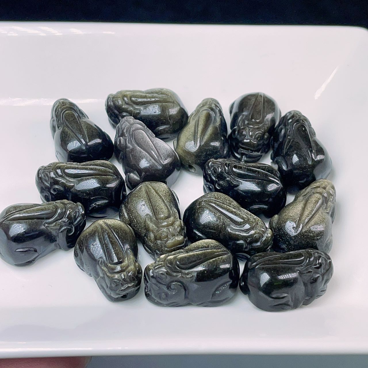 【貔貅】貫通孔 天然石 オブシディアン 彫刻パーツ NO.R23