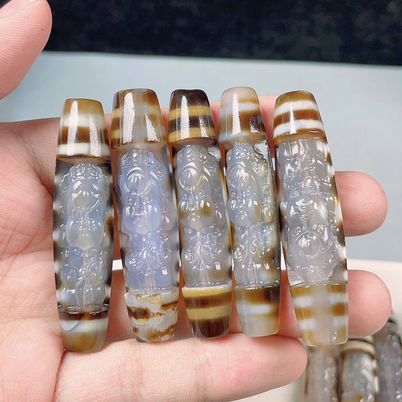 【05】.貫通孔 天然石 カルセドニー 天珠 彫刻パーツ