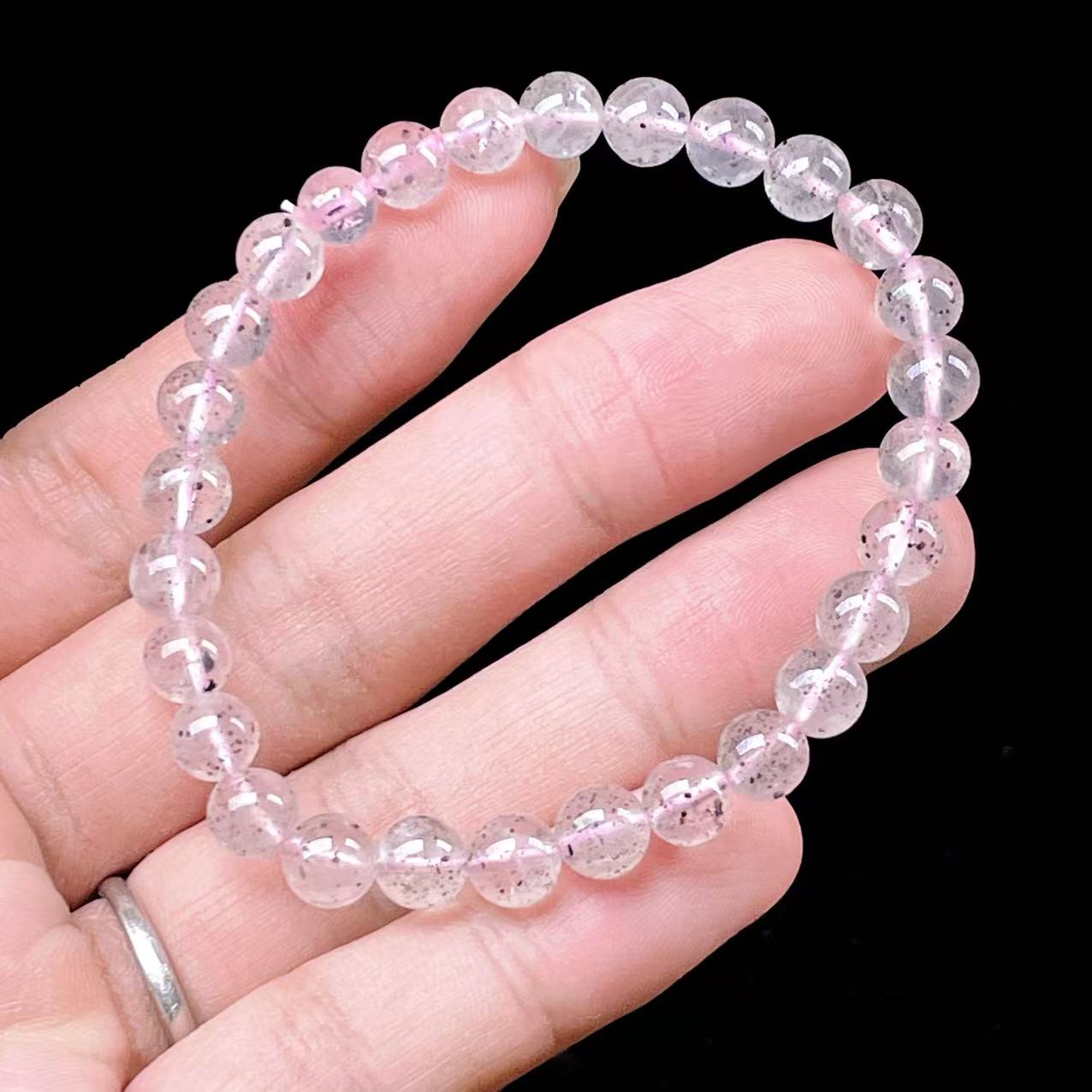 PROME 天然石・一点物・マイカインローズクォーツ・バイオタイトインローズクォーツ・ブラジル産・ブレスレット・V49947