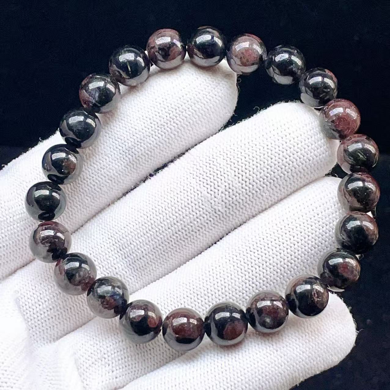PROME 天然石【一点物】高品質・希少石・花火ガーネット・ガーネットインヌーマイト・グリーンランド産・インクルージョンの輝き・ブレスレット・v75823