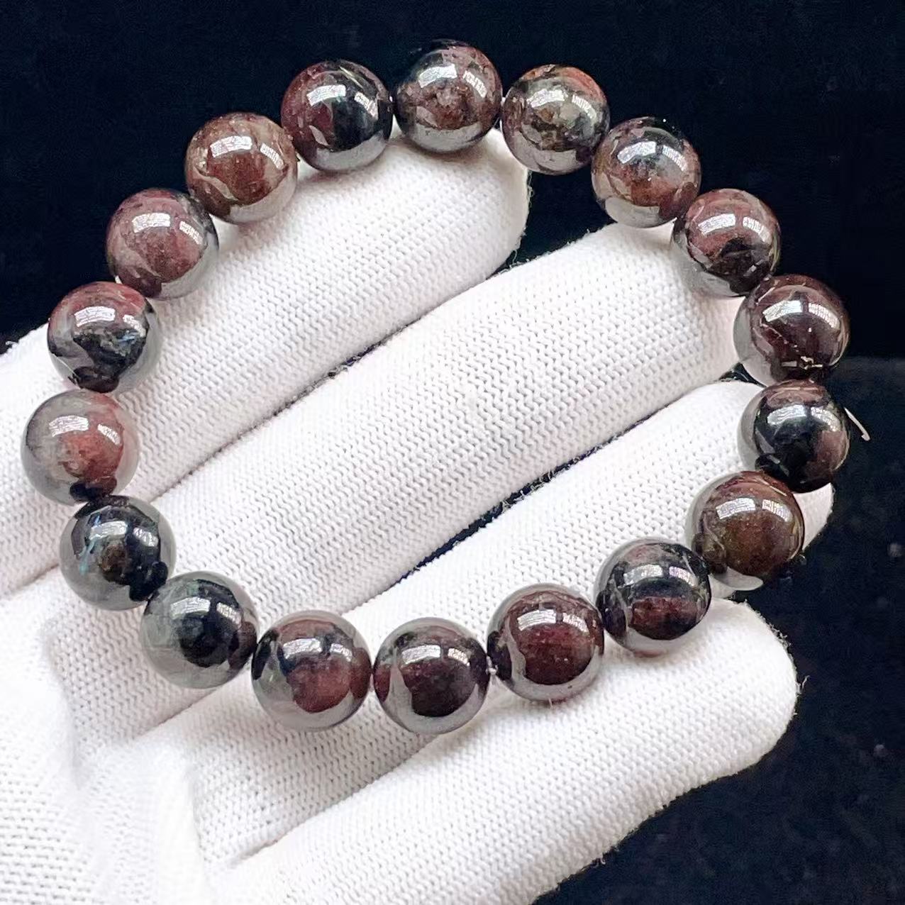 PROME 天然石【一点物】高品質・希少石・花火ガーネット・ガーネットインヌーマイト・グリーンランド産・インクルージョンの輝き・ブレスレット・v75844
