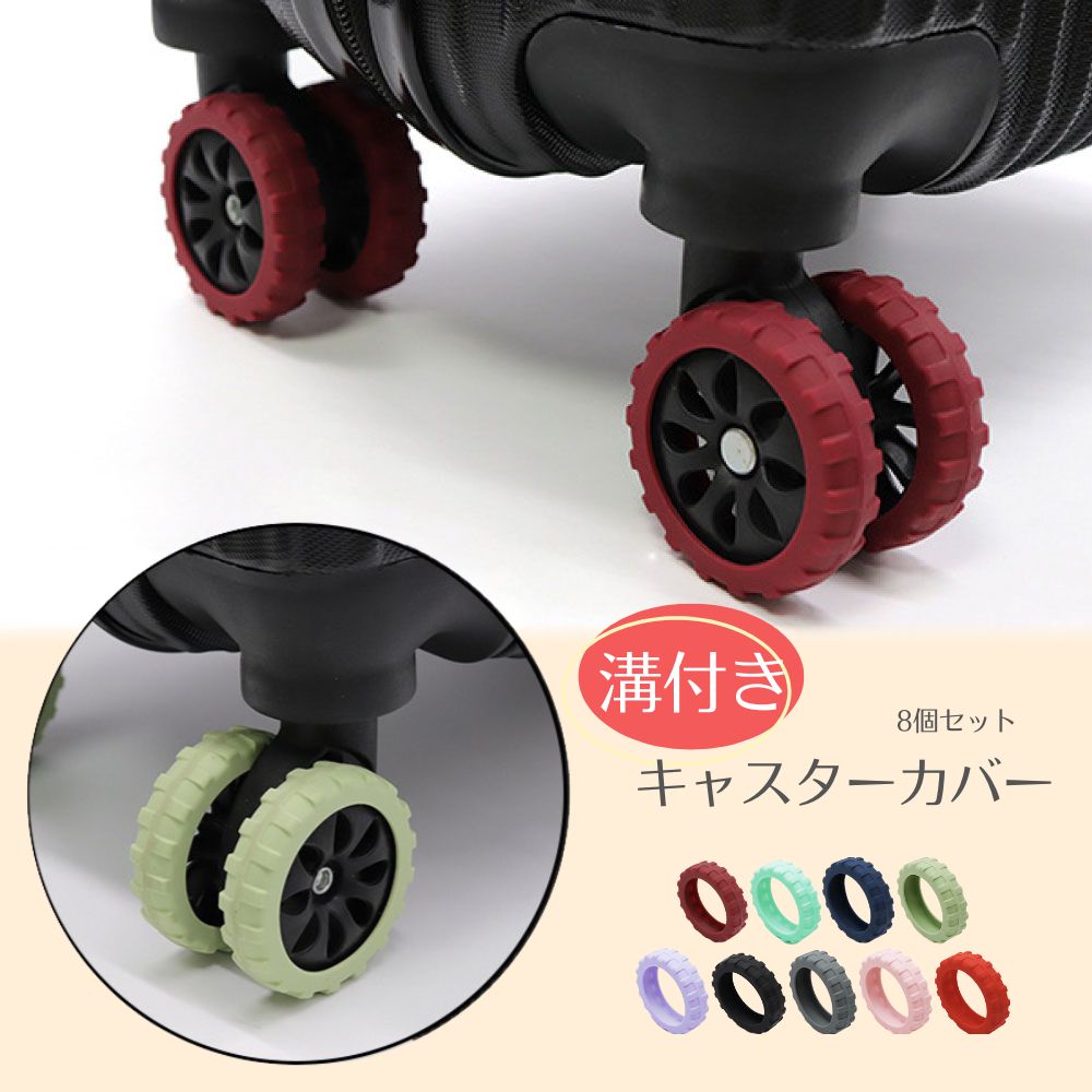 キャスターカバー 溝付き ゴム シリコン 8個セット スーツケース キャリーケース キャリーバッグ タイヤ シリコンゴム 静音 耐久 傷防止 滑り止め 旅行グッズ