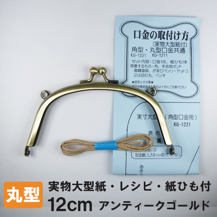 [KG-1211]カン付がま口金・丸型 12×7.5cm アンティークゴールド 実物大型紙付き