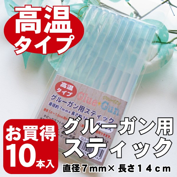 | 当商品の特長/規格 | | 商品名 | 高温タイプ/グルーガン用スティック GLS-01 | | | | 材質 | EVA 半透明タイプのグルースティック | | 本体サイズ | 直径(約)7mm×長さ(約)14cm が10本入っております。 | | 生産国 | 中国製 ※検品は国内で致しております。 | |