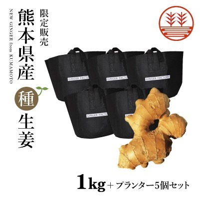 種生姜 熊本県産 無農薬生姜 1kg +プランター5個セット 送料無料 国産 栽培 種芋