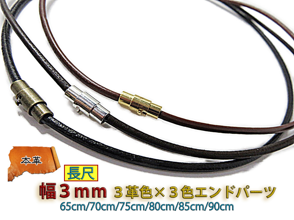 革ヒモ:幅3mm×長さ65cm/70cm/75cm/80cm/85cm/90cmからお選び下さい
