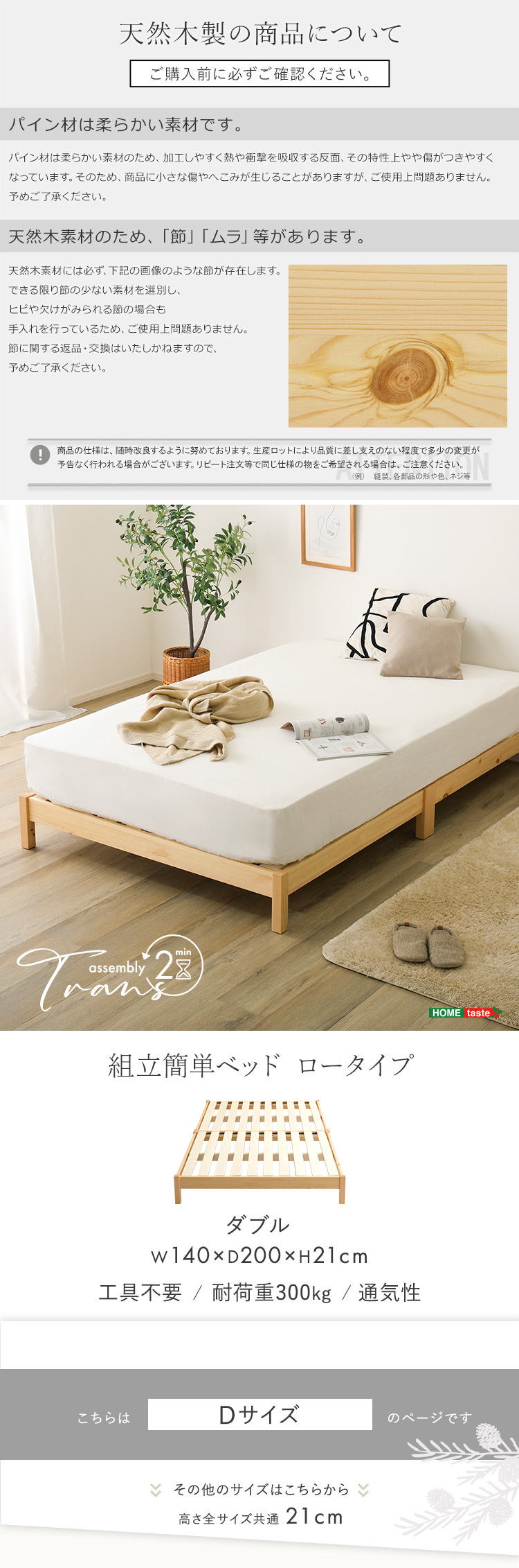 ベッド すのこベッド 140×200×21cm 木製 フレームのみ ダブル ナチュラル色 YHTRSD