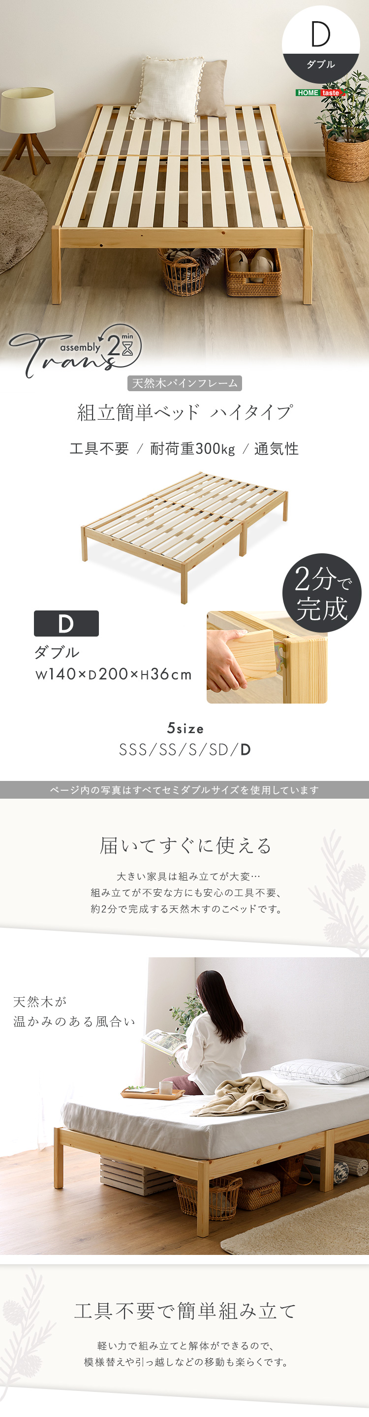 ベッド すのこベッド 140×200×36cm 木製 フレームのみ ダブル ナチュラル色 YHTRSHD