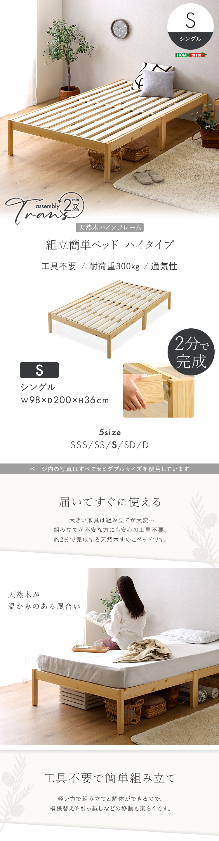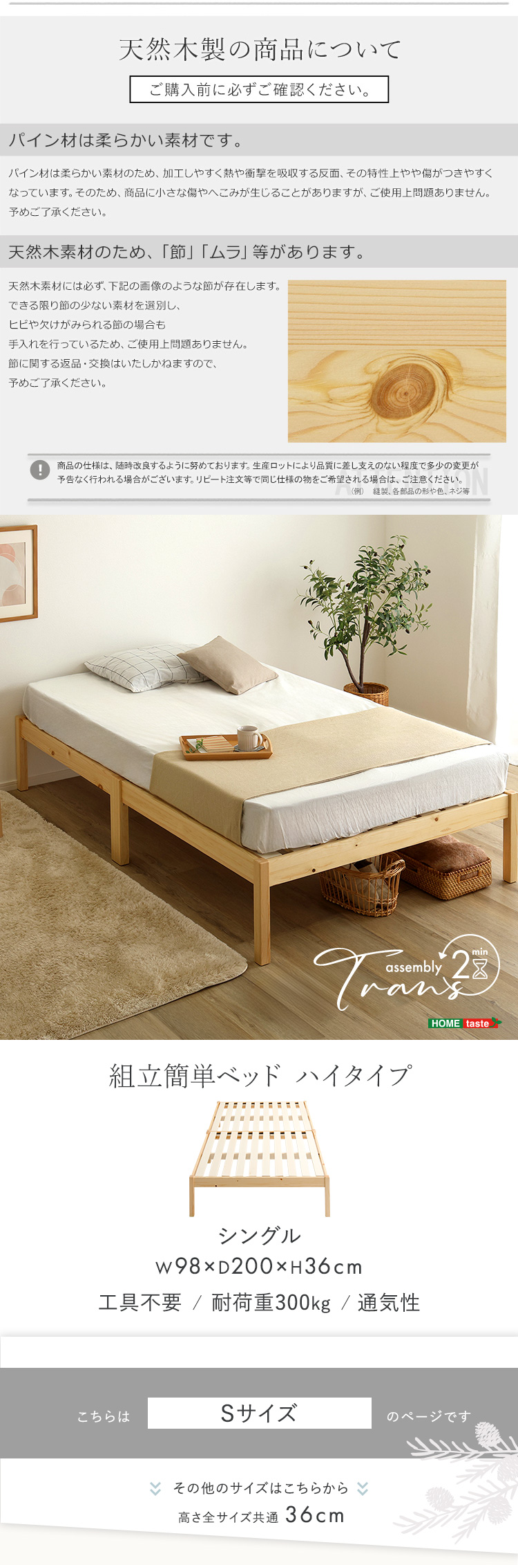 ベッド すのこベッド 98×200×36cm 木製 フレームのみ シングル ナチュラル色 YHTRSHS