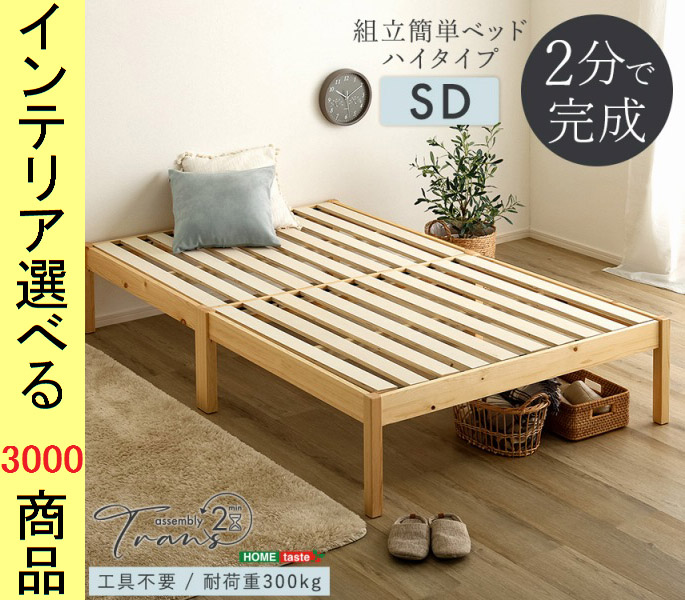 <銀ラグの 家財 ベッド セミW すのこ ナチュラル>