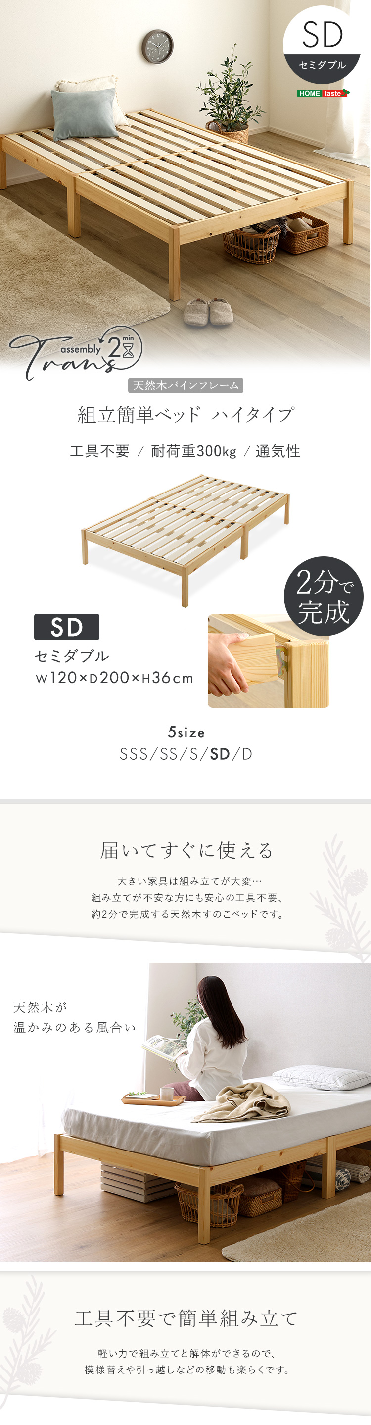 ベッド すのこベッド 120×200×36cm 木製 フレームのみ セミダブル ナチュラル色 YHTRSHSD