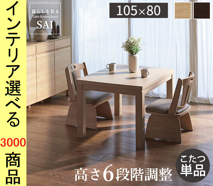 こたつ テーブル 105×80×45cm ダイニングタイプ 高さ6段階調節可 ファン式ヒーター付き ナチュラル・ブラウン色 YNG0100118
