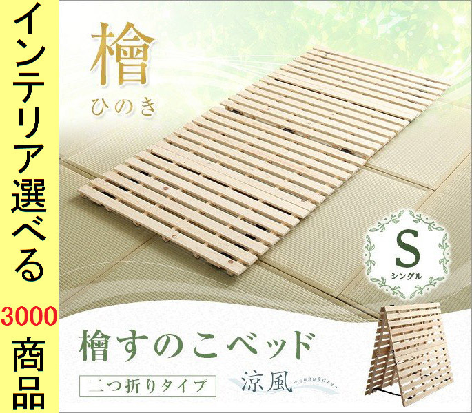 睡眠用すのこ 97×196×3.8cm 木製 ひのき 2つ折りタイプ シングル ナチュラル色 YHHNK2S