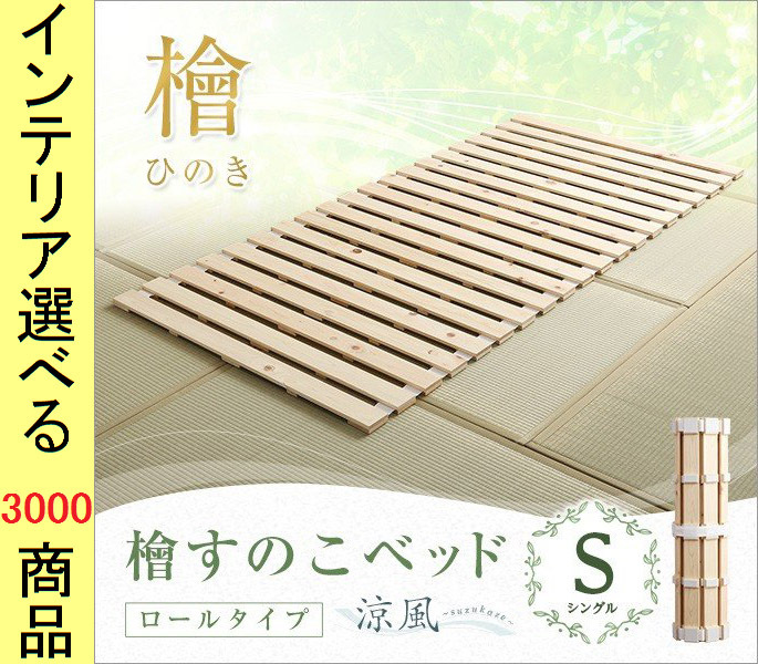 睡眠用すのこ 100×200×2.5cm 木製 ひのき ロール収納可能 シングル ナチュラル色 YHHNKRS