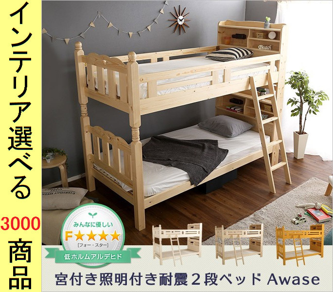 <銀ラグの 家財 ベッド 2段 シングル ナチュラル>