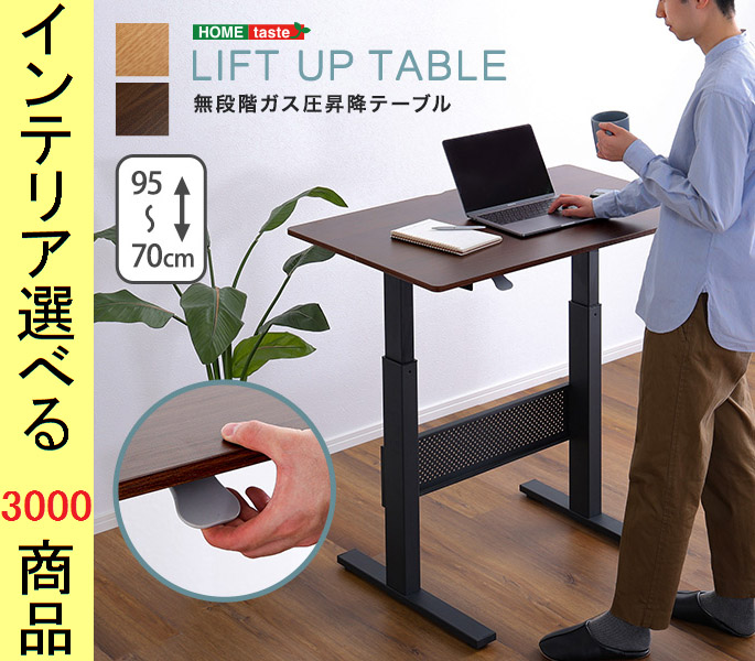 テーブル 96.5×60×70cm 高さ無段階調節可能 ガス圧昇降式 四角形 ウォールナット・シャビーオーク色 YHHTJGD