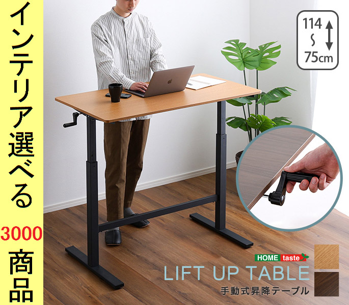 テーブル 113×60×75cm 高さ無段階調節可能 ガス圧昇降式 手動式 四角形 ウォールナット・シャビーオーク色 YHHTJSD