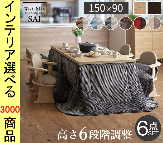 こたつセット テーブル+掛布団+肘置き付き回転椅子4脚 150×90×45cm ダイニングタイプ 高さ6段階調節可 ファン式ヒーター付き 2色展開 YNI3300264