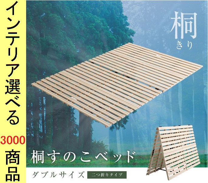 睡眠用すのこ 140×196×3.8cm 木製 桐 溝付き 2つ折りタイプ ダブル ベージュ色 YHKIR2D