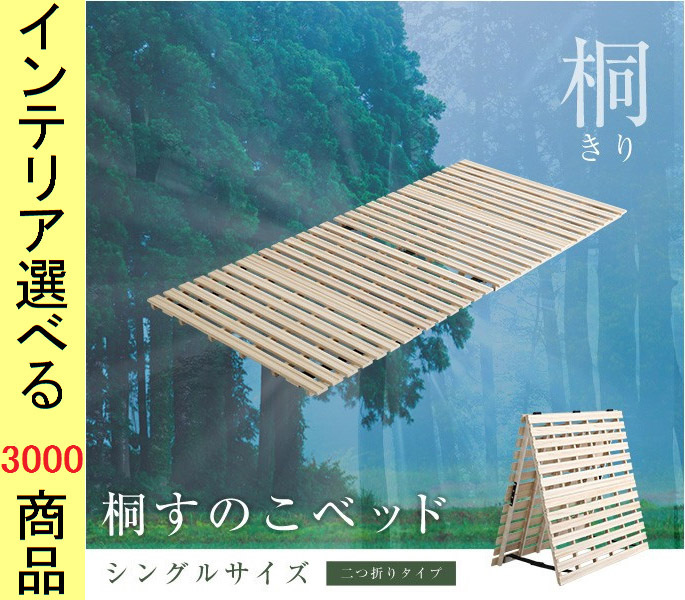 睡眠用すのこ 96×196×3.8cm 木製 桐 溝付き 2つ折りタイプ シングル ベージュ色 YHKIR2S