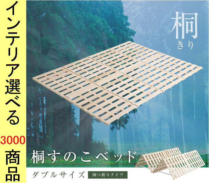 睡眠用すのこ 140×196×2.5cm 木製 桐 4つ折りタイプ ダブル ベージュ色 YHKIR4D