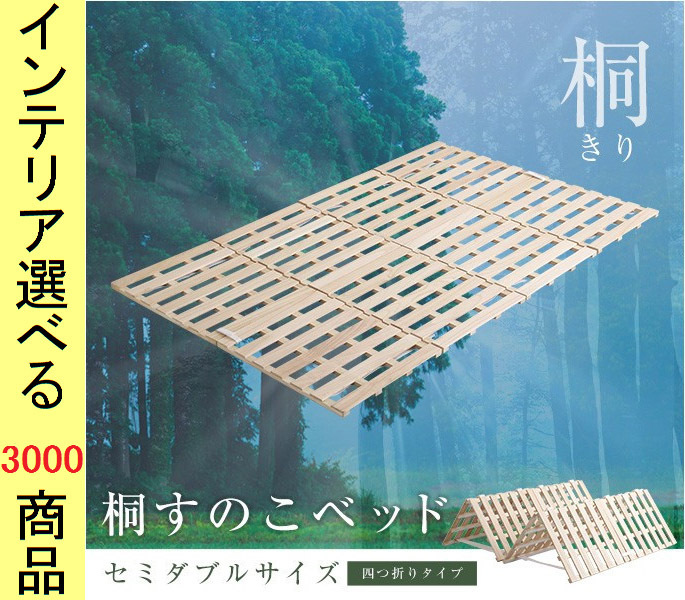 睡眠用すのこ 120×196×2.5cm 木製 桐 4つ折りタイプ セミダブル ベージュ色 YHKIR4SD