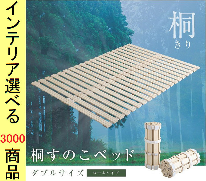 睡眠用すのこ 140×200×2.5cm 木製 桐 ロール収納可能 ダブル ベージュ色 YHKIRRD